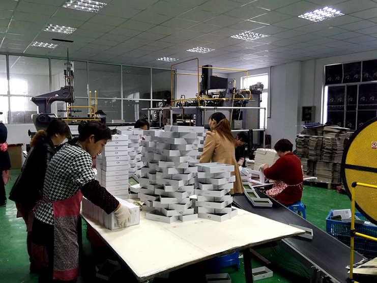 車間工人在規整剛從生產線上下來的禮盒